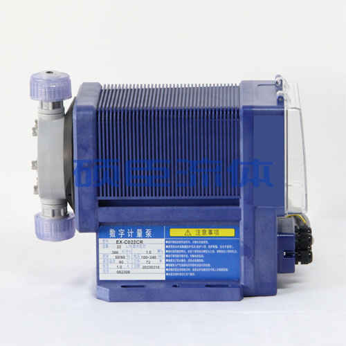 數(shù)字計量泵的優(yōu)點:? 高調(diào)節(jié)比,高度集成 使用BLDC電機閉環(huán)控制(非步進電機),高度集成工業(yè)電子控制,可實現(xiàn)精確控制與反饋,并具有很高的調(diào)節(jié)比。 ? 抗氣蝕及高精度 可獨立精確控制吸入 / 排出速度,可輸送高粘度及易分解液體,確保了化學投藥的高重復性(±1%)。 ? 高效節(jié)能型設計 通過使用斜齒輪和輔助彈簧的精巧設計,降低功耗;同時免除了油浴需求,延長了泵的使用時間。 ? 自動控制 EX可自動按照模擬、脈沖、批量或間隔批量等操作設定運作。 ? 寬電壓運行 EX系列使用寬電源電壓(100-240VAC),可在所有國家 / 地區(qū)使用。 ? 標配豐富的控制信號接口 標配脈沖信號,電流信號接收及電流信號輸出,STOP,急停,報警及RS485總線等接口,滿足各種復雜工況。 ? 人性化設計 3.5寸LCD彩色高清屏,簡單明了。 ? 無粘合劑的隔膜 采用“全 PTFE”復合隔膜,提高耐化學腐蝕能力。 ? LED 提示燈 控制單元上的大型 LED 提示燈可清楚顯示各種運行狀態(tài)和報警狀況。 ? 多種泵頭材質(zhì)可選 過流端材質(zhì)可選,可適應不同液體,外表采用高強度復合材料,優(yōu)良的結(jié)構(gòu)設計,進一步提高耐化學腐蝕能力。 ? 超壓保護功能 輸出壓力超過泵運行壓力,計量泵可自動停止運行并報警,避免了計量泵因憋壓燒毀。 ? 具有 IP65防護等級